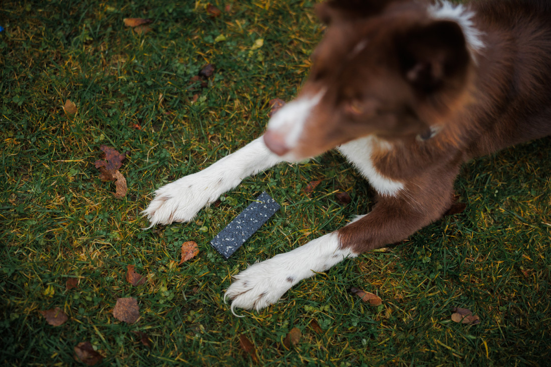 - bloky z různých materiálů, aby si pes zvykl na odlišné alternativy: barevný filc, guma, kůže, překližka, dřevo
